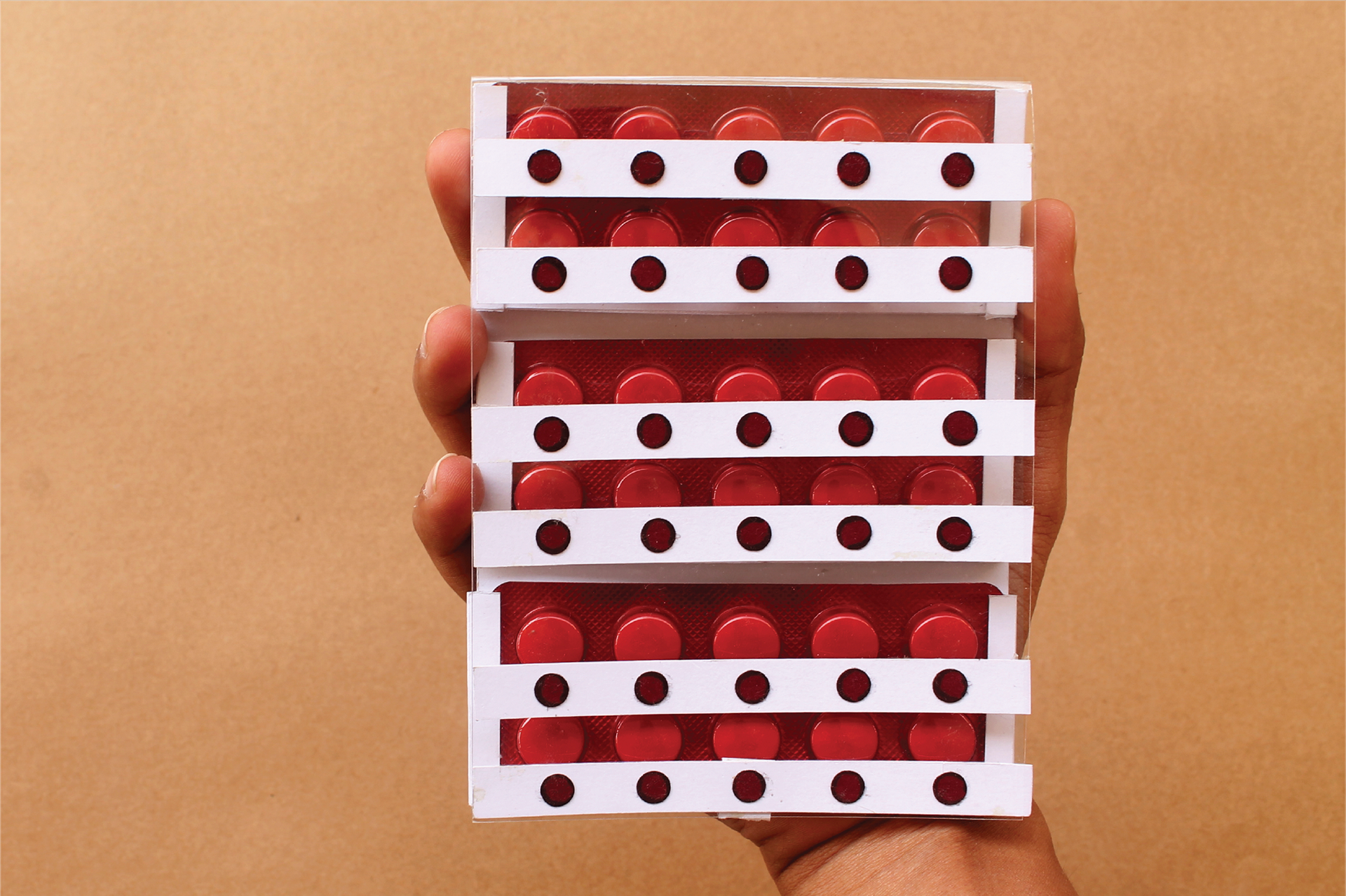 Iron supplements packaging that comes with bindis, urging them to take a tablet every time they put a bindi. Hence acting as a reminder in their daily ritual, an integral part of their lives.